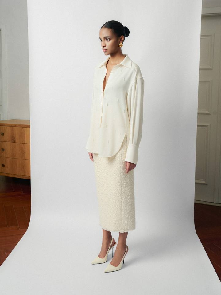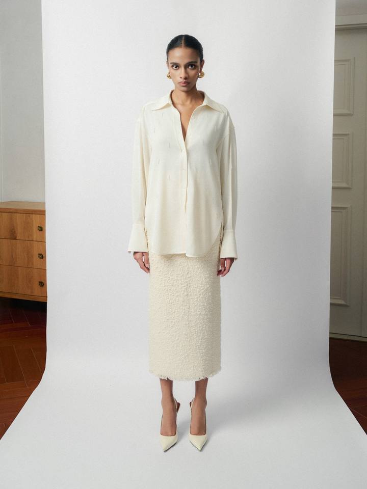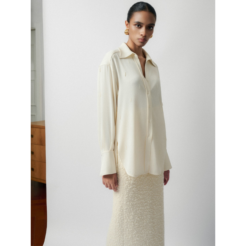 Feminine Style Women'S Shirts Front Buttons Pina Emb Silk Crepe Blouse Eco-Friendly Fabric Clothes Women Whiteant Vietnam
