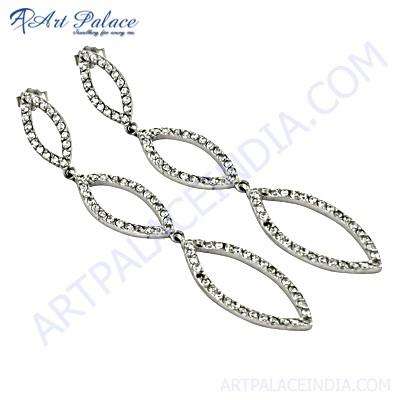 ต่างหูเงินอัญมณี CZ ที่ไม่ซ้ำใครสำหรับผู้หญิงทำด้วยมือจากวัตถุดิบไม้ไผ่