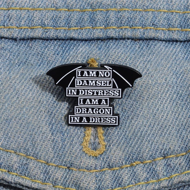 เข็มกลัดเคลือบสำหรับสตรีฉันไม่มี Damsel in Distress ฉันเป็นมังกรในชุดเดรสเข็มกลัดติดปกคอเสื้อตราสำหรับผู้หญิงของขวัญเครื่องประดับ