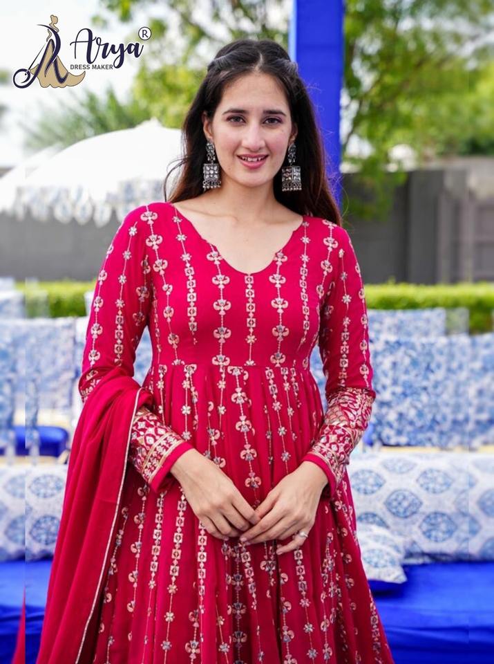 Fency Thread Work and Mirror Work Pink Gown Pair With Dupatta -1850