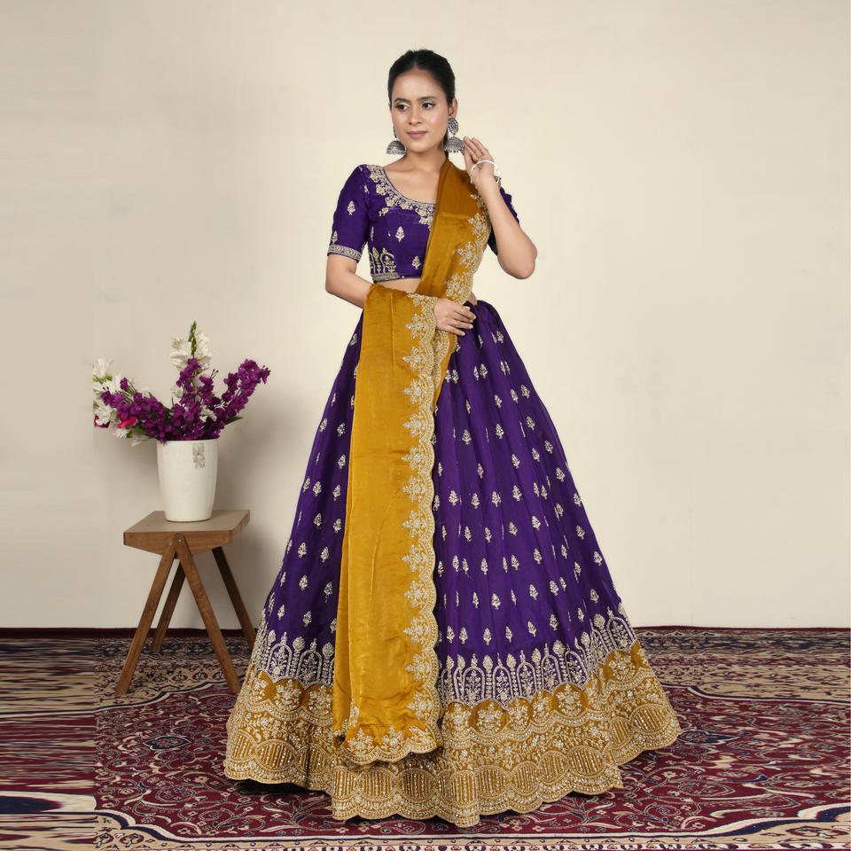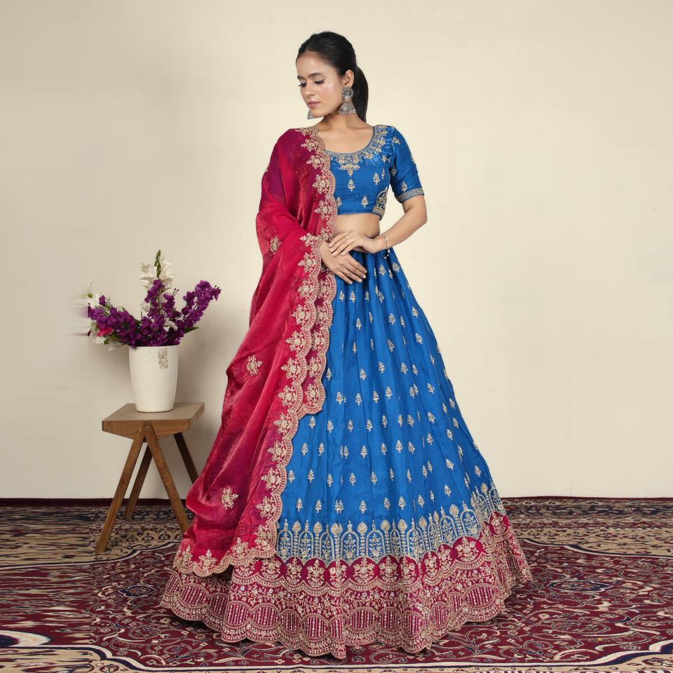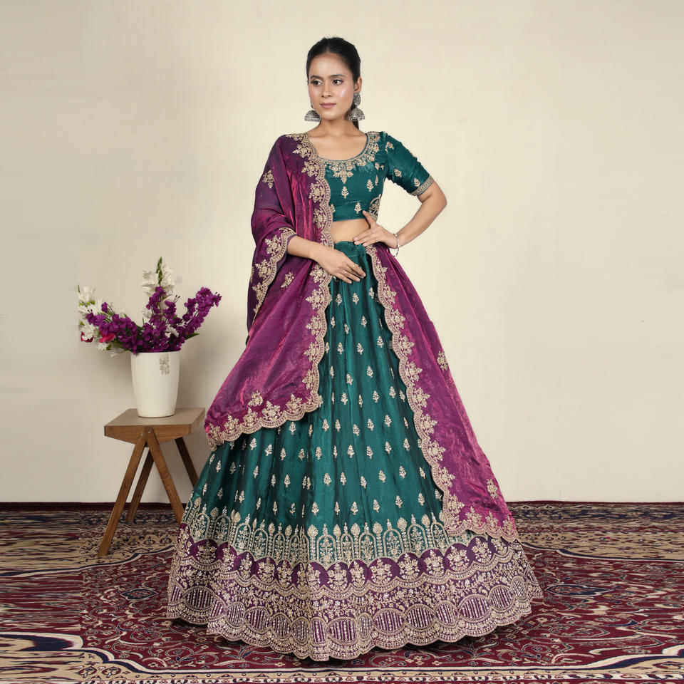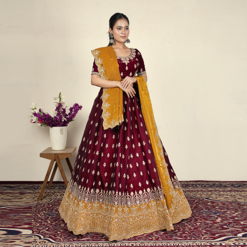 ชุดเฟนดี เลเฮนกา โจลี พร้อมงานปักลายชาติพันธุ์ที่ประณีตและขอบกว้าง | ผู้ซื้อสินค้าขายส่งชุดงานรื่นเริงและชุดแต่งงานสำหรับผู้หญิง