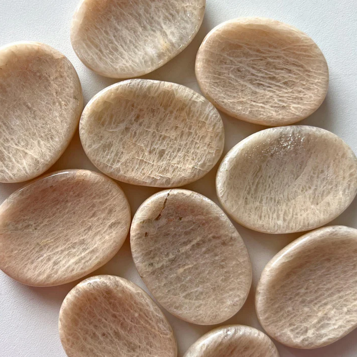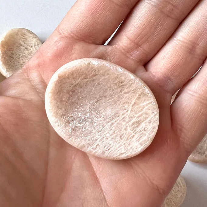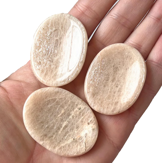 ฮวงจุ้ยและนางฟ้าคริสตัลขัดนิ้วหัวแม่มือมูนสโตนพลอยบำบัดกึ่งมีค่าสำหรับปาล์มกังวลหินคริสตัล