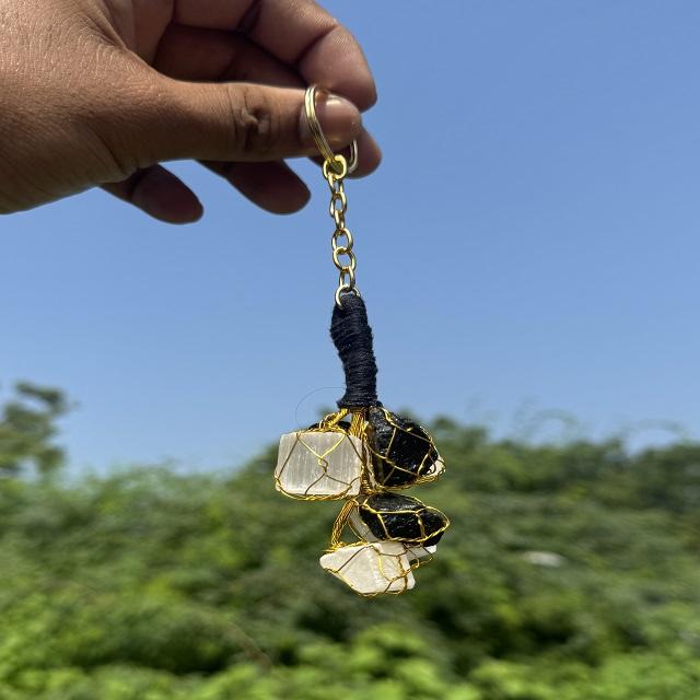 Product name:Black Tourmaline With Selenite Keychain