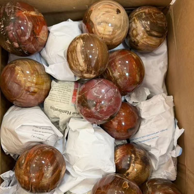ลูกบอลไม้ฟอสซิล ขนาดคละ ผู้จัดจำหน่ายงานฝีมือคริสตัล ราคาส่งตรงจากโรงงาน