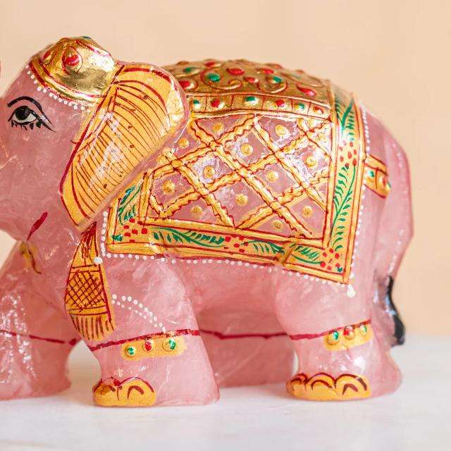 รูปปั้นช้างหินโรสควอตซ์สไตล์ฮวงจุ้ย ของตกแต่งบ้าน งานศิลปะพื้นบ้านหยกแกะสลักจากคริสตัล วัสดุอัญมณี
