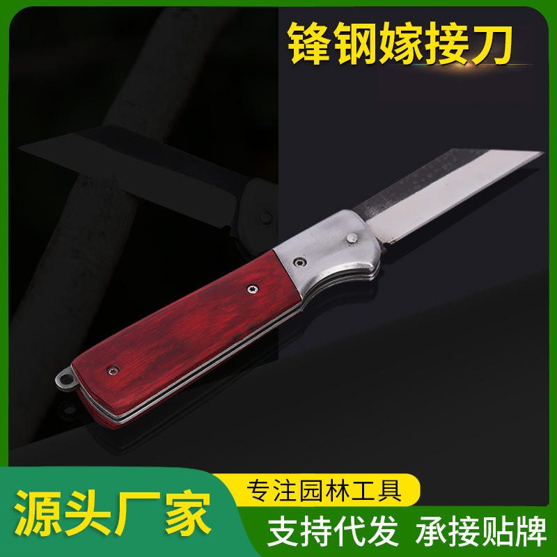 Fenggang Folding Grafting Knife High Carbon Steel Straight Edge Red Handle 110g Linyi Made Garden Tool