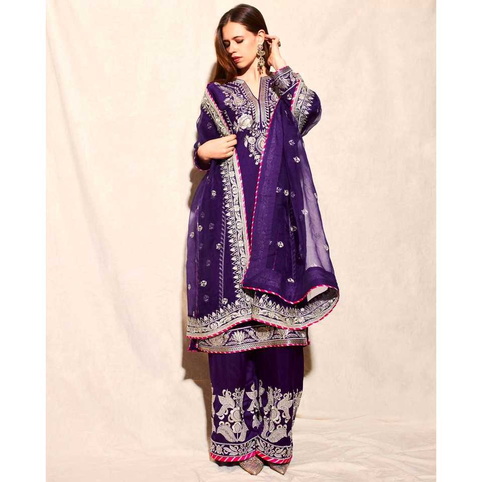 ชุดสูทผ้าปักลายสำหรับผู้หญิง, ชุดเสื้อผ้าสำหรับใส่ไปงานปาร์ตี้สีม่วง