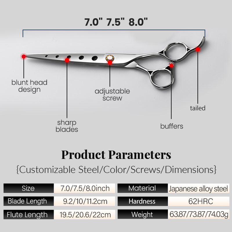 กรรไกรตัดแต่งขนสุนัข Fenice Hollow-carved Desig ขนาด 7/7.5/8 นิ้ว กรรไกรตรงสำหรับสุนัขพันธุ์ใหญ่