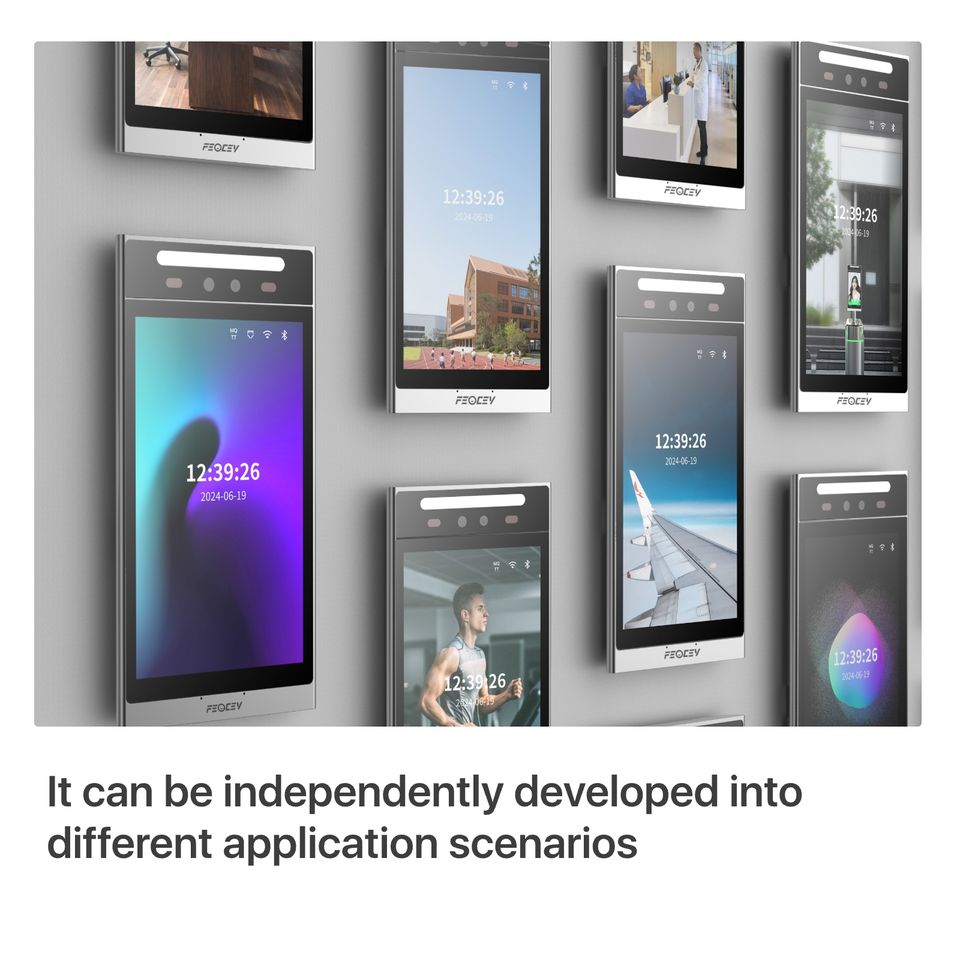 เครื่องควบคุมการเข้าออกด้วยใบหน้า Feocey FCV5005 AI พร้อมระบบกันน้ำ IP66 มองเห็นได้ในเวลากลางคืน หน้าจอ 8 นิ้ว ระบบบันทึกเวลาทำงานด้วยการจดจำใบหน้า