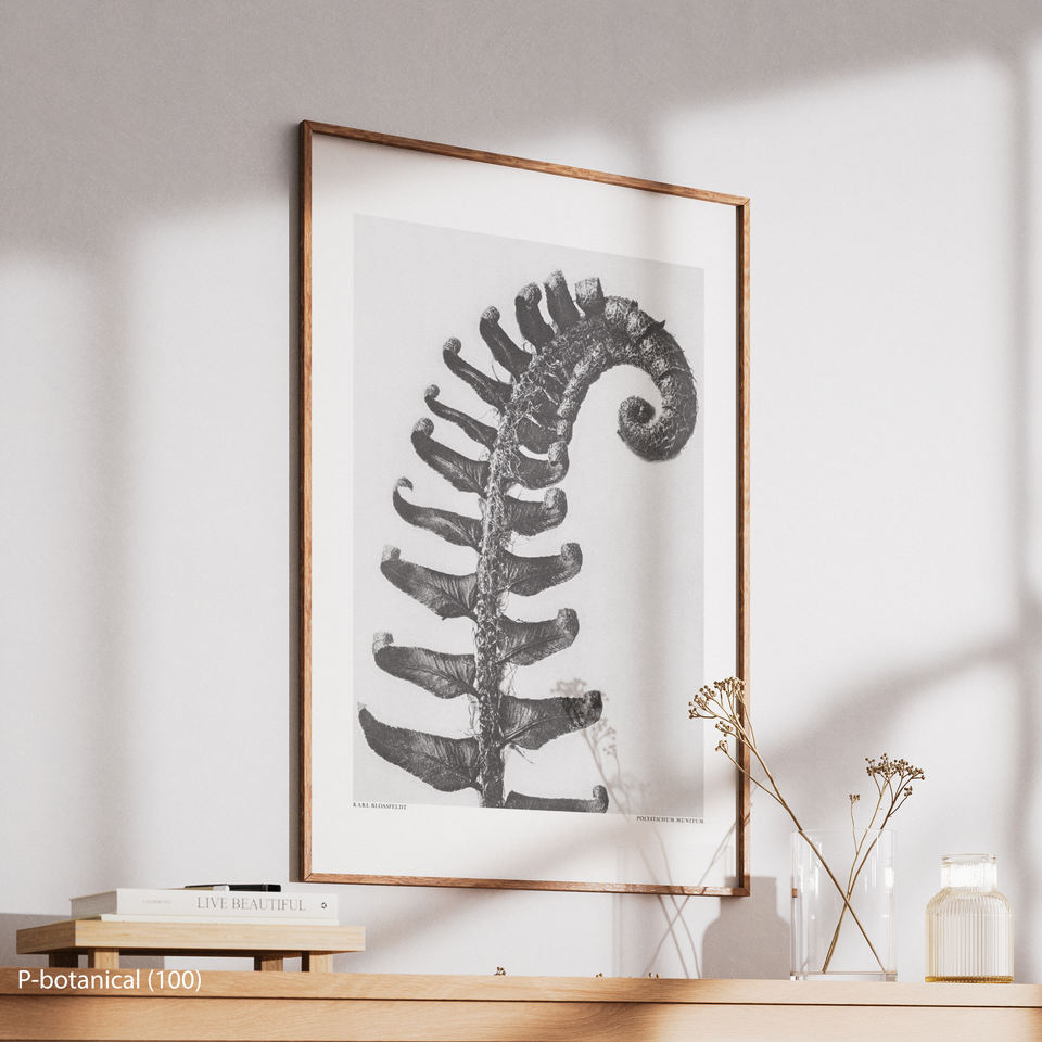 ภาพพิมพ์บนผ้าใบลายพฤกษศาสตร์เฟิร์น ศิลปะตกแต่งผนังสไตล์โมเดิร์น ภาพประกอบพฤกษศาสตร์วิทยาศาสตร์ พร้อมกรอบไม้
