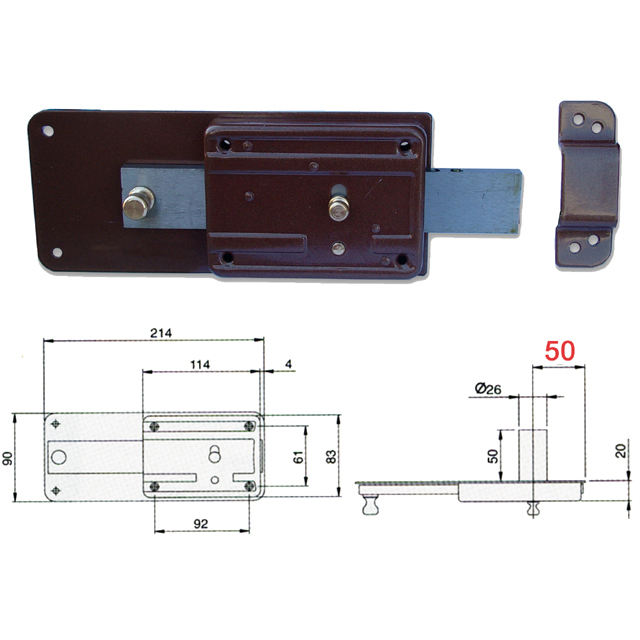 Ferroglietto 6 Mandate C/F E50 3106 ISEO Door Rim Lock Steel and Aluminium Material