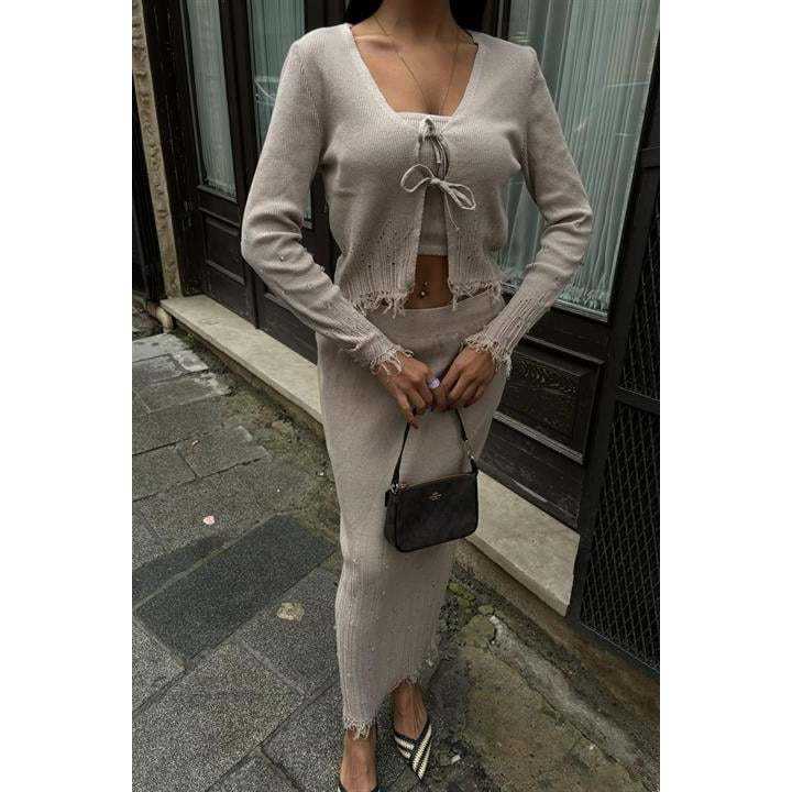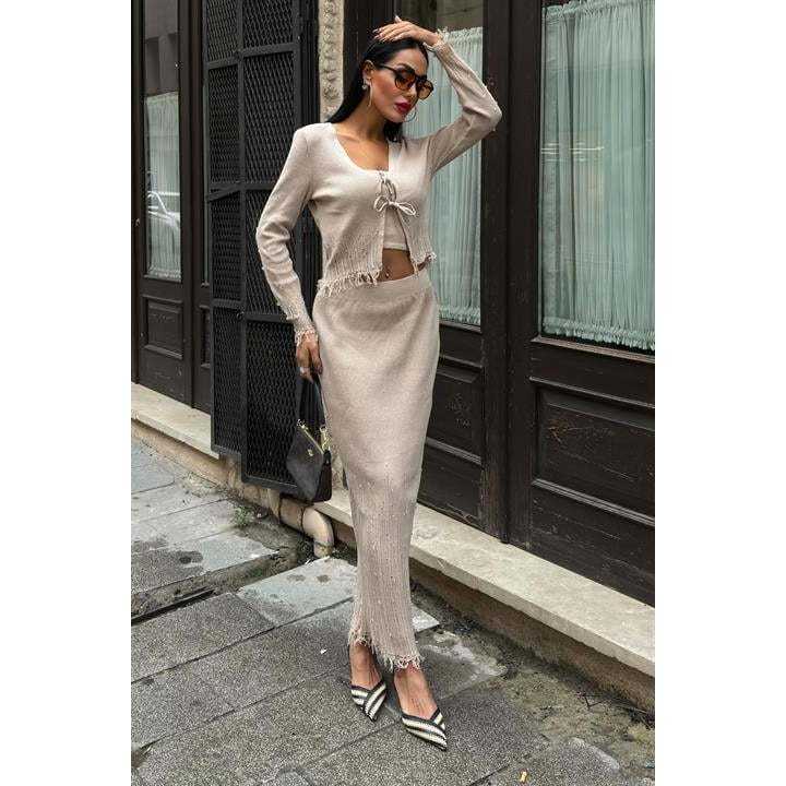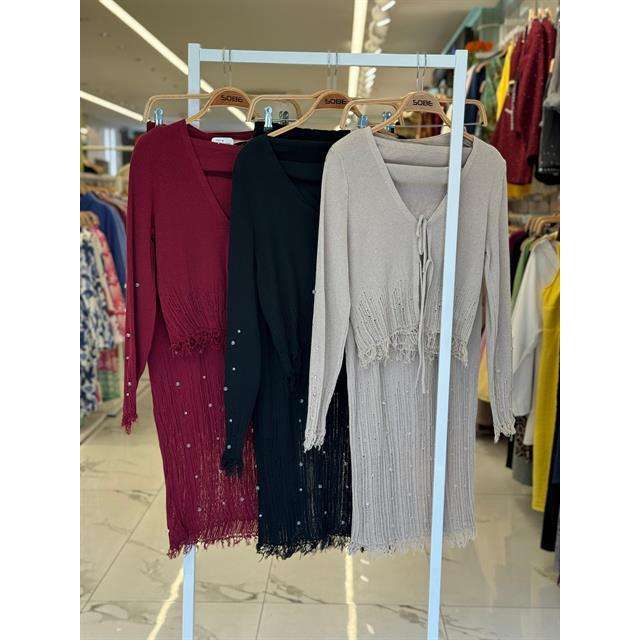 ชุดสามชิ้นเฟอร์รี่เพิร์ลโบฮีเมียน 9879 ผ้าถักลายละเอียด