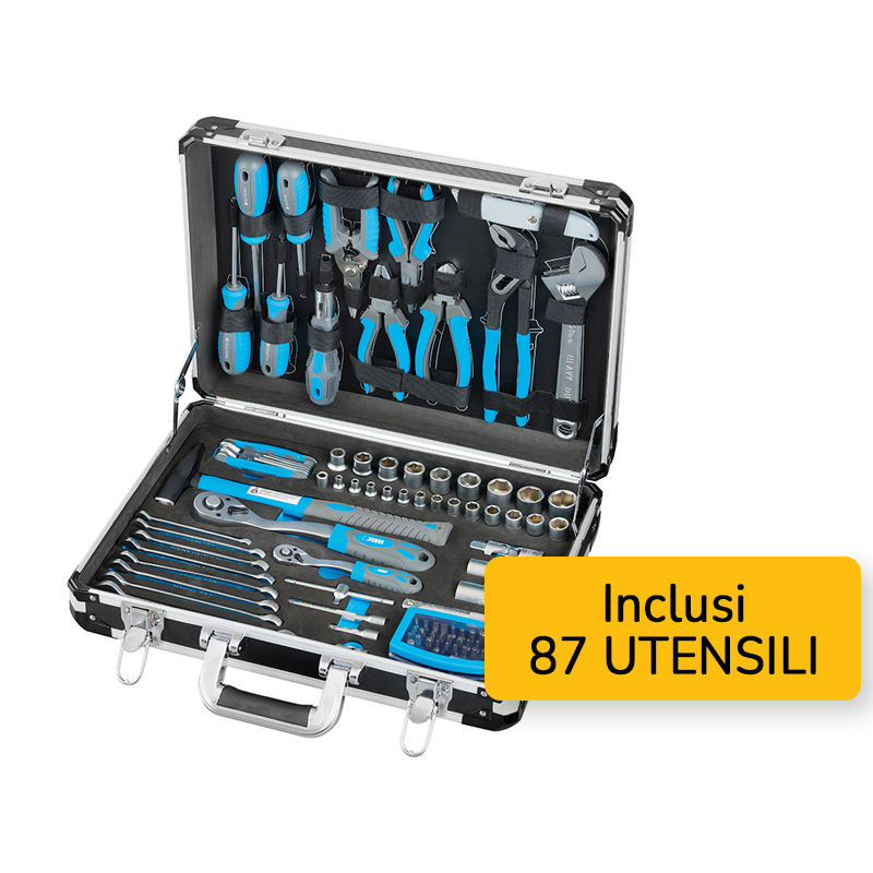 เคสเครื่องมือ0399 fervi พร้อมเครื่องมือ87ชิ้นสำหรับการบำรุงรักษาทั่วไป