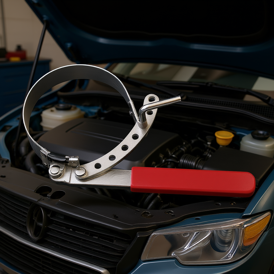 Fervi Adjustable Steel Belt Filter Wrench With Red Handle For Oil Filter Maintenance