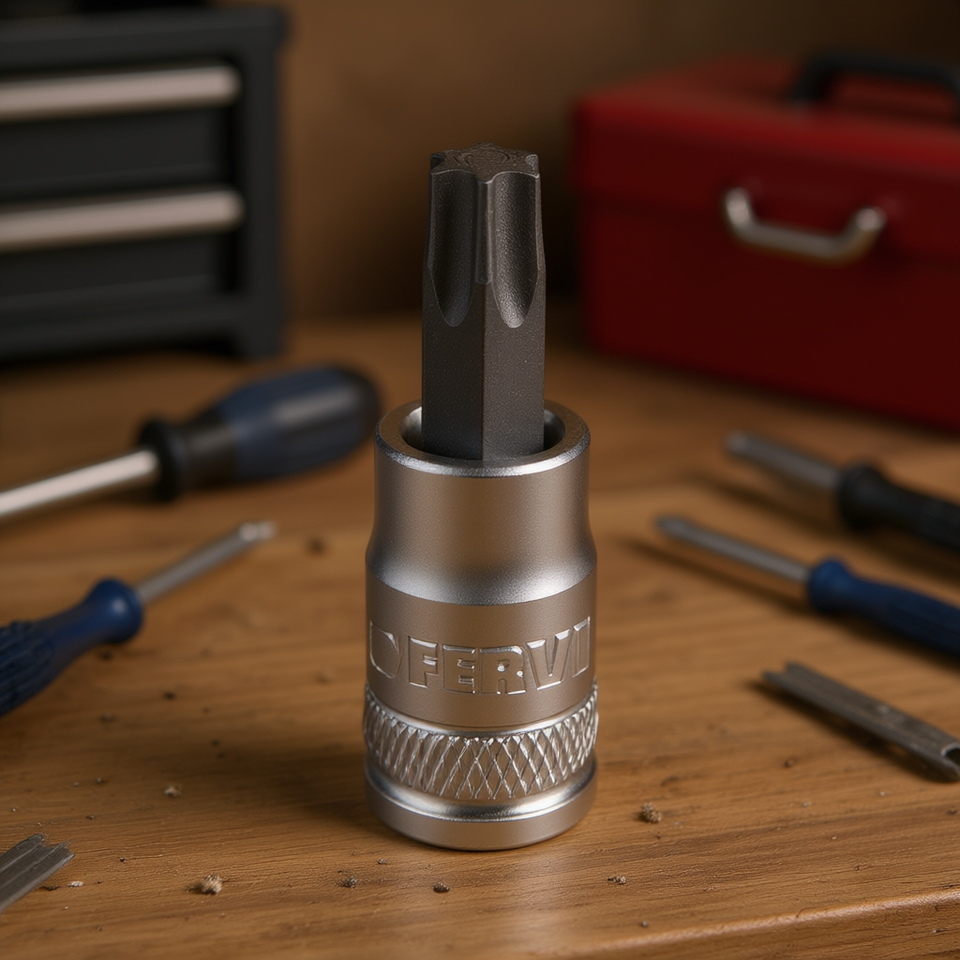 หัวไขควงทอร์กซ์แบบชุบโครเมียมเกรดอุตสาหกรรม Fervi ขนาด 10 มม. สำหรับงานประกอบอุปกรณ์อิเล็กทรอนิกส์และงานยึดติดที่ต้องการความแม่นยำ