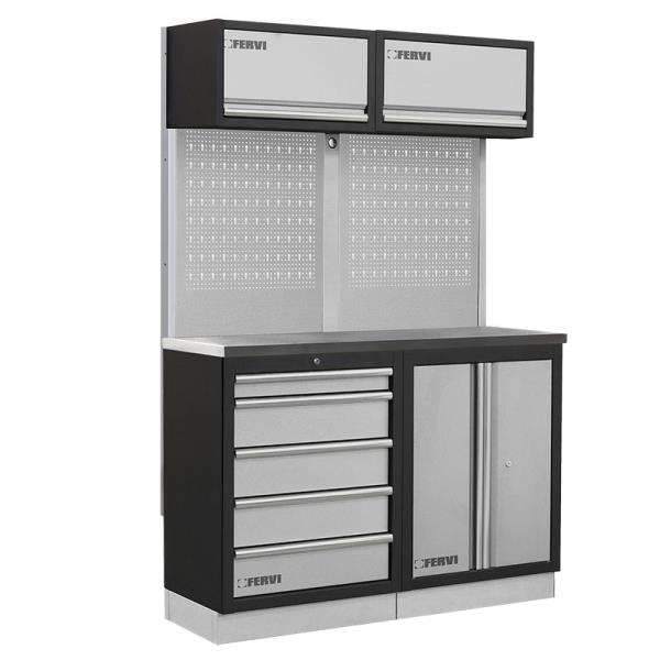 ตู้เก็บของแบบโมดูลาร์ Fervi รุ่น A008M โครงเหล็กเคลือบสีเทาแบบล็อคได้ พร้อมฐานวางของ