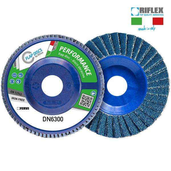 แผ่นขัดเฟอร์วี เพอร์ฟอร์แมนซ์ ฟลาปดิสก์ 125 x 22 มม. สีน้ำเงิน ปราศจากเหล็ก สำหรับงานขัด