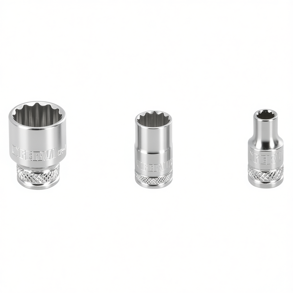ประแจบล็อกเฟอร์วี โพลีโกนัล รุ่นธรรมดา 12 จุด ผลิตจากเหล็กโครเมียมวาเนเดียม