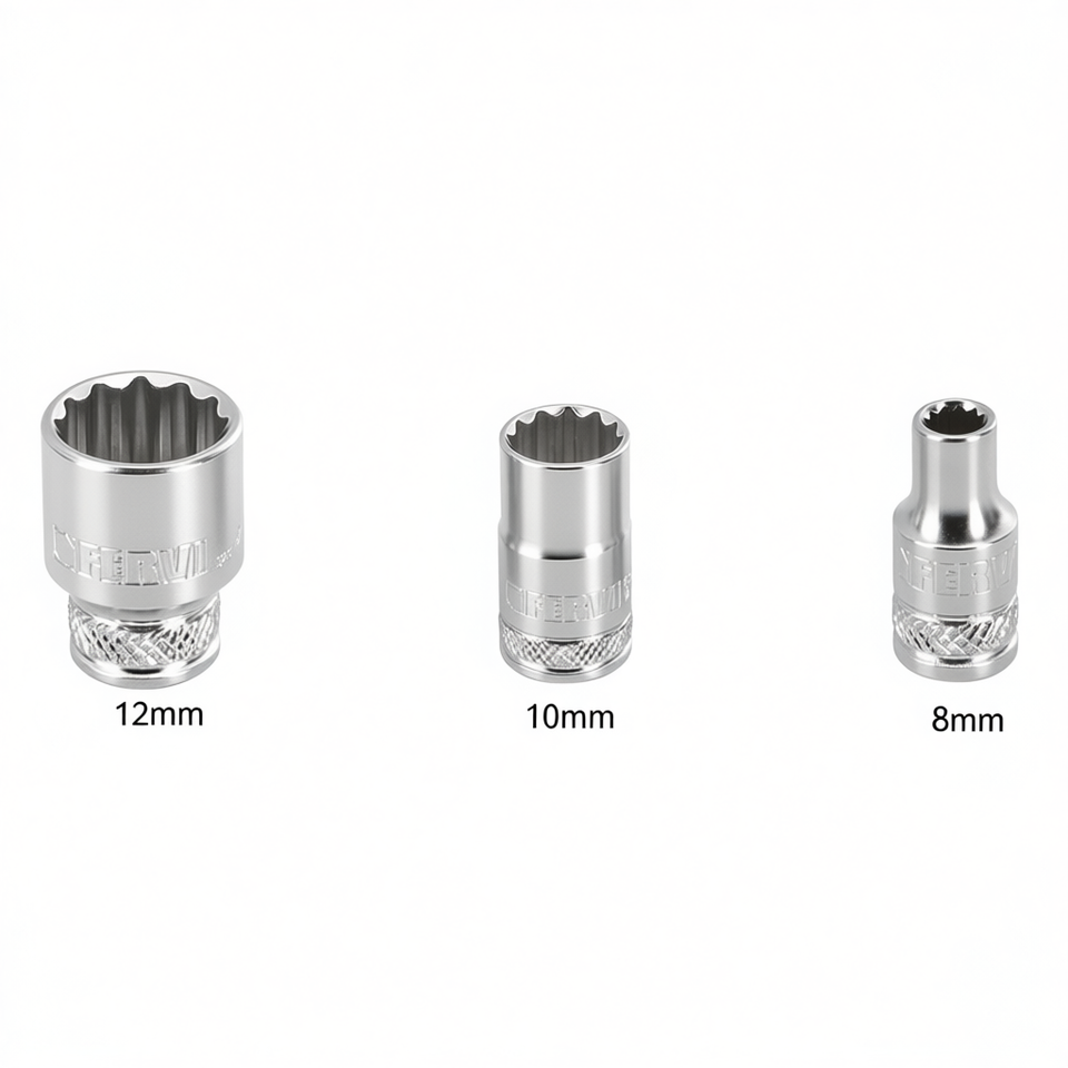 ประแจบล็อกเฟอร์วี โพลีโกนัล ซีรีส์ธรรมดา ขนาด 12 มม. 10 มม. 8 มม. ชุดประแจเมตริก
