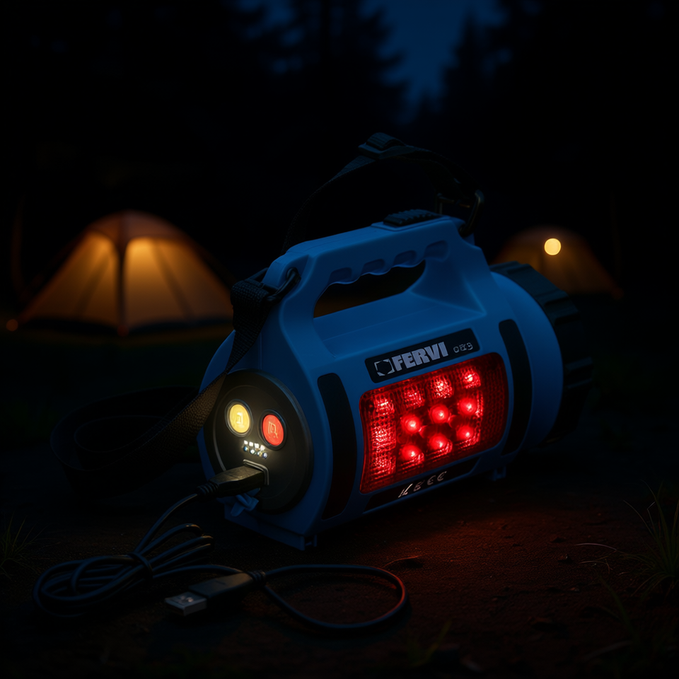 ไฟสปอร์ตไลท์ LED แบบชาร์จไฟได้ Fervi พร้อมพอร์ต USB ใช้แบตเตอรี่ 12v สำหรับใช้งานกลางแจ้ง