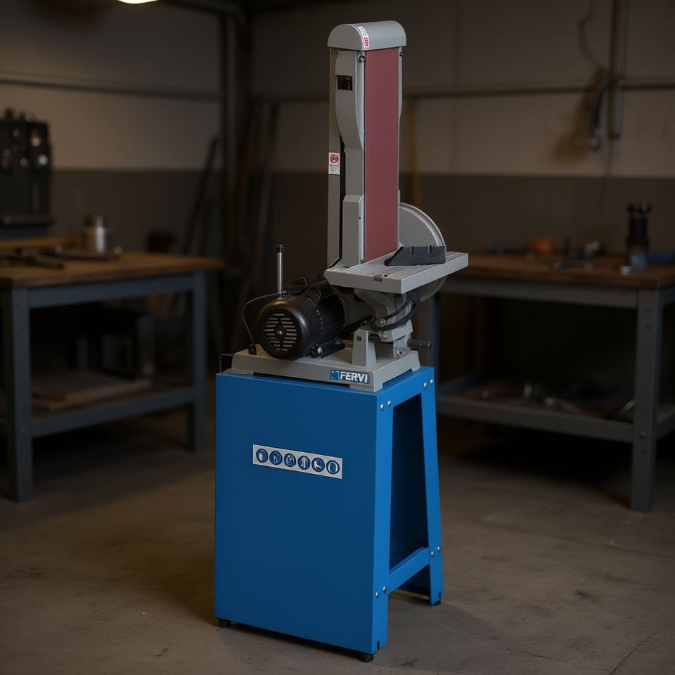 เครื่องขัดสายพานเอียงได้ Fervi พร้อมแท่นวาง กว้าง 150 มม. มอเตอร์ 2000 วัตต์ เกรดอุตสาหกรรม