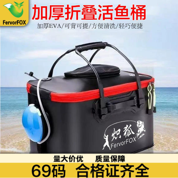 เฟอร์โวร์ฟ็อกซ์กล่องตกปลาแบบพับได้ 40 ซม. สีดำ กันน้ำ กล่องใส่ปลาสดอเนกประสงค์พร้อมที่จับสำหรับใช้กลางแจ้ง