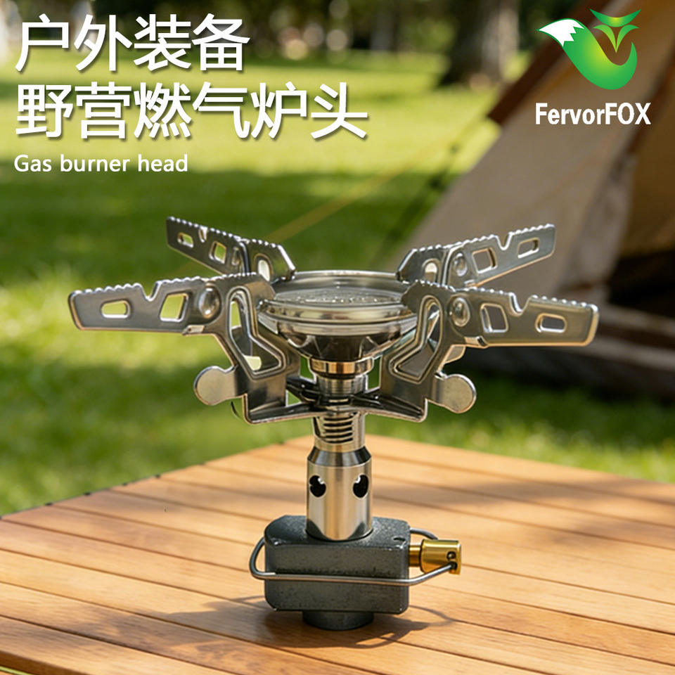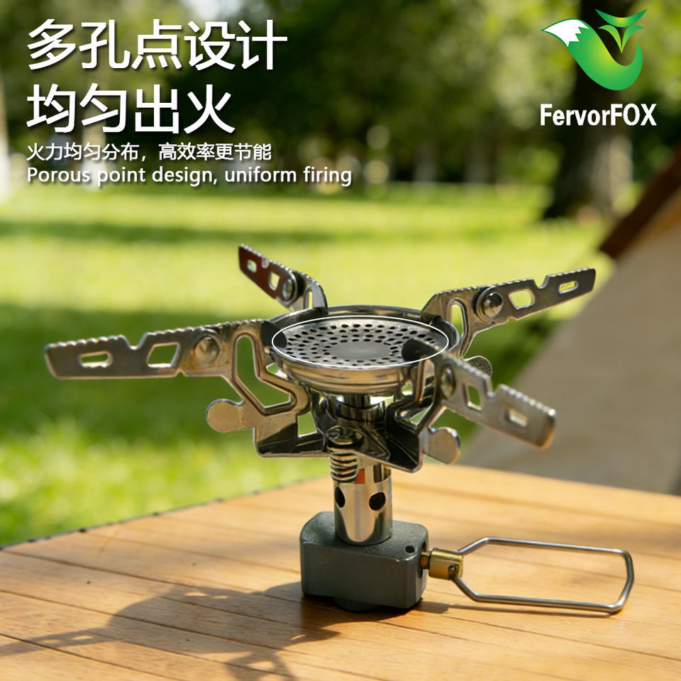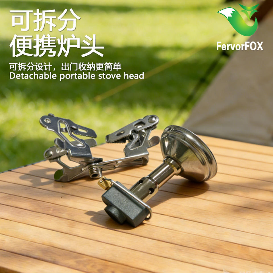 เฟอร์โวฟอกซ์เตาแก๊สพกพาสำหรับตั้งแคมป์ขนาดเล็กพับได้เตาทำอาหารกลางแจ้งกันลมน้ำหนักเบาสีเงิน 10.5x6.5x6.5 ซม.