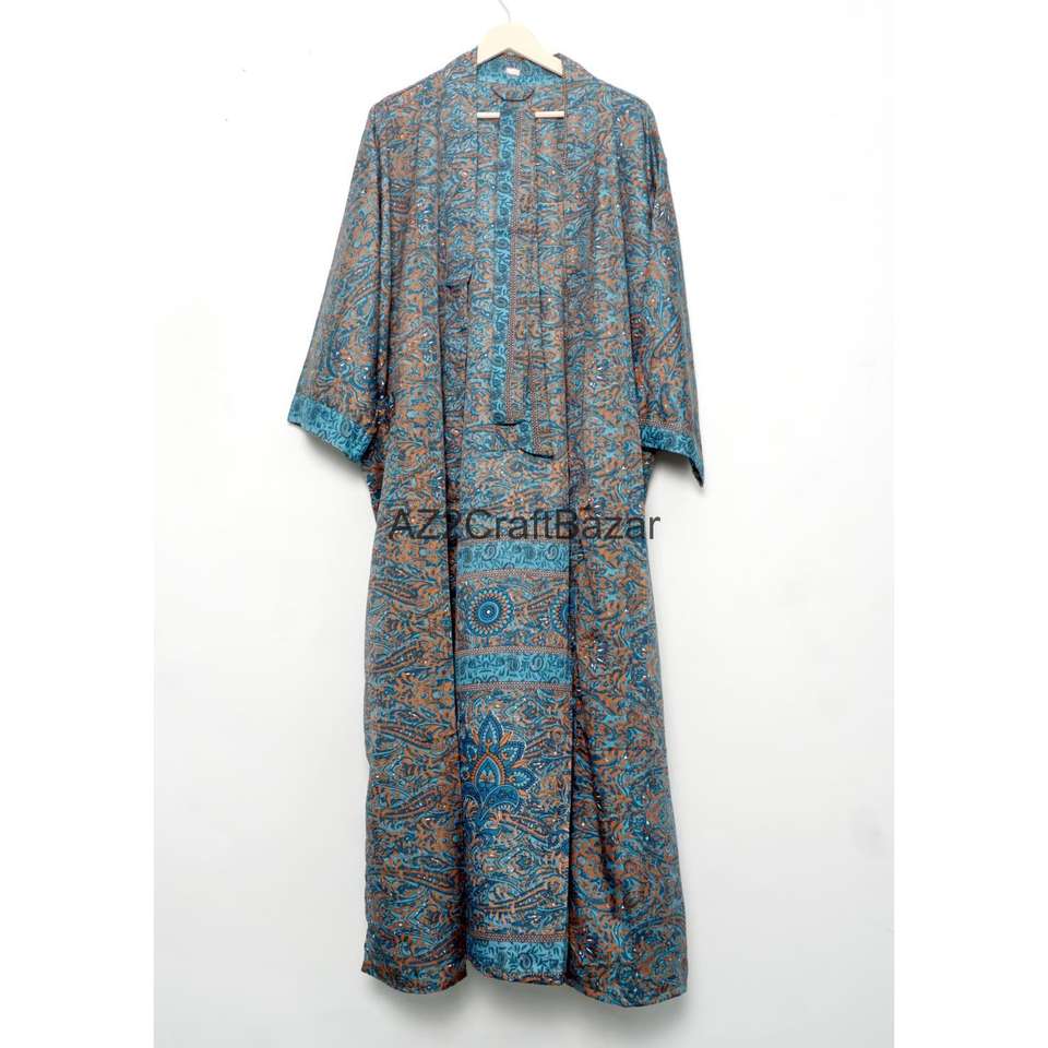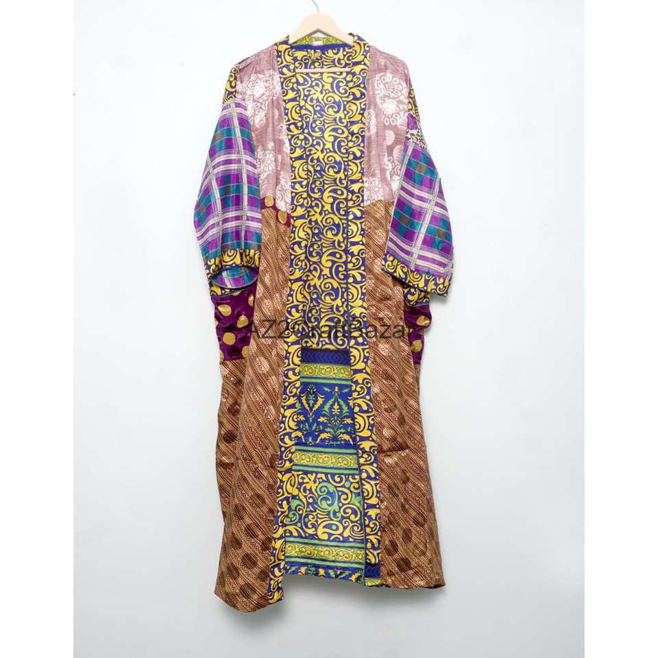 ชุดกิโมโนผ้าไหมแท้ 100% แบบปะติดปะต่อ คอวี มีเชือกผูก แขนยาวเต็มตัว สำหรับผู้หญิง สวมใส่ในงานปาร์ตี้
