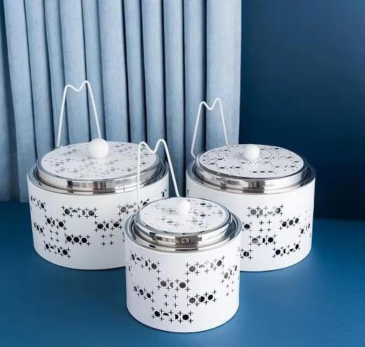 ถังโลหะเคลือบผงสีขาวสำหรับตกแต่งเทศกาลพร้อมฝาปิดหม้อร้อนอาหรับสำหรับเดือนรอมฎอนและงานแต่งงาน