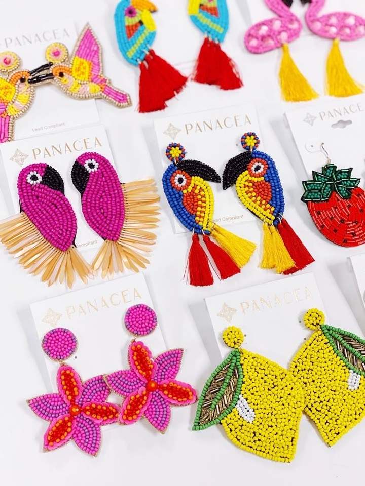 ต่างหูลูกปัดปักทำมือสวมใส่ในงานเทศกาล