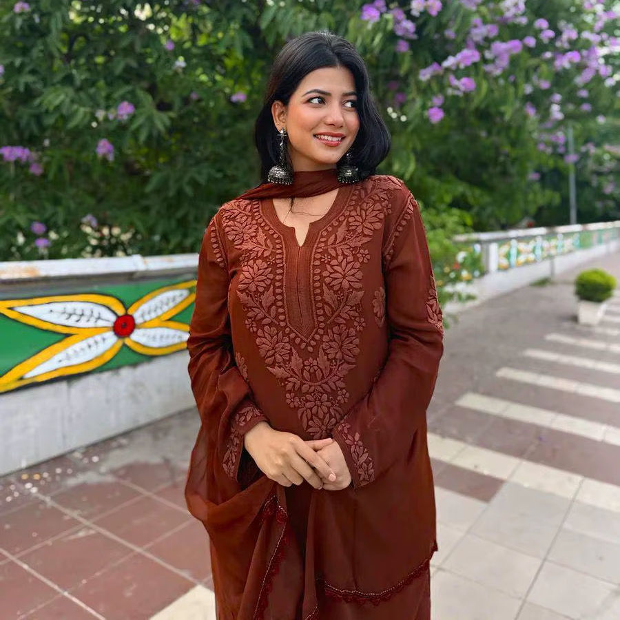ชุดคุर्ติปัลลาซโซ่ปักลายพร้อมผ้าคลุมไหล่ผ้าไหมวิสโคสแท้สำหรับผู้หญิง สไตล์ชาติพันธุ์ เหมาะสำหรับใส่ไปเที่ยวชายหาด