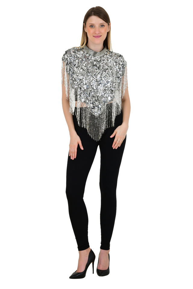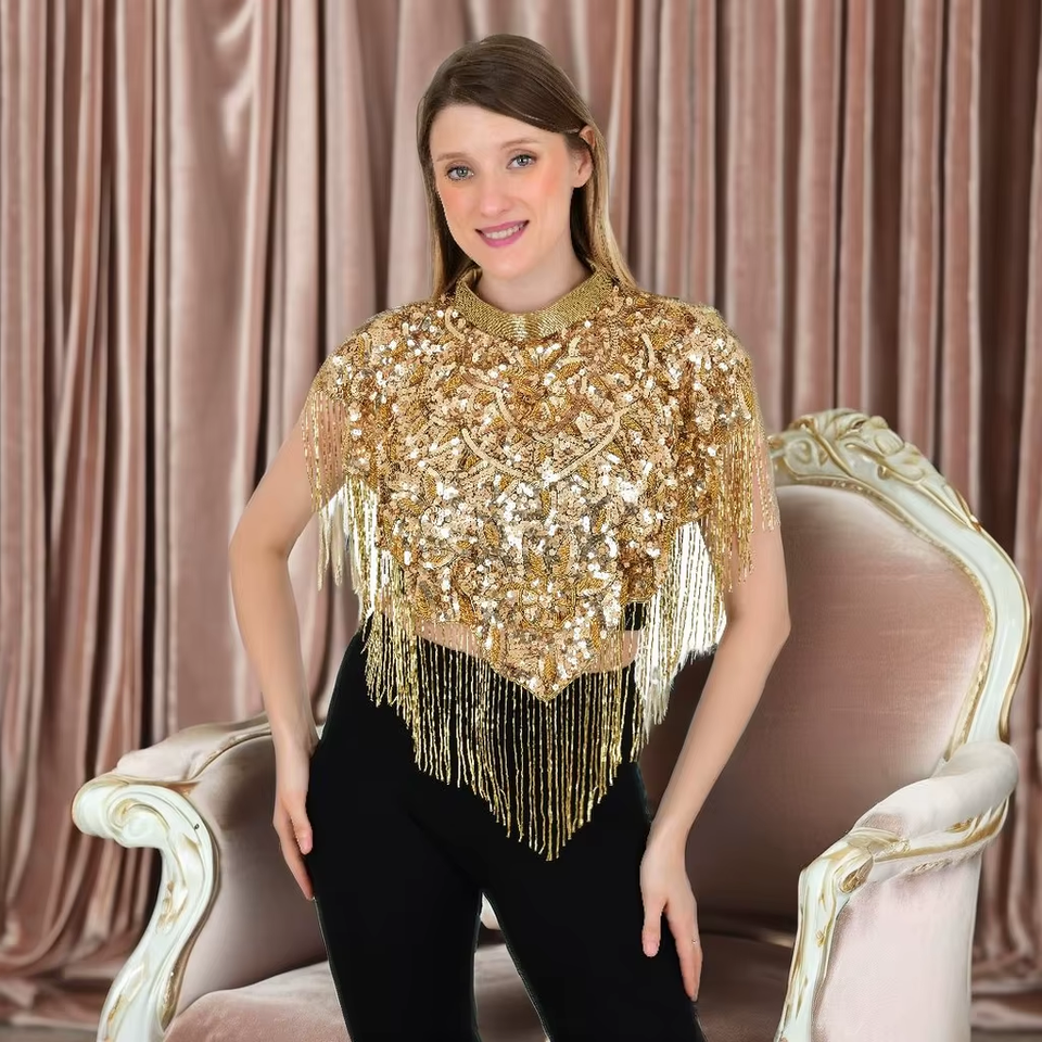 เสื้อปอนโชปักลูกปัดงานแฮนด์เมดสำหรับผู้หญิงสวมใส่ได้ดีที่สุดสำหรับงานแต่งงานวันเกิดคลับปาร์ตี้