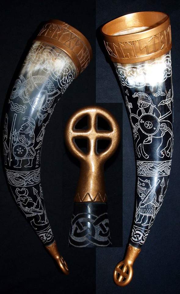 ฮอร์นดื่มไวกิ้งสำหรับเทศกาลทำมือสำหรับทุ่งหญ้าและเบียร์เหมาะสำหรับงานเลี้ยงคริสต์มาสและงานเลี้ยงวันหยุด