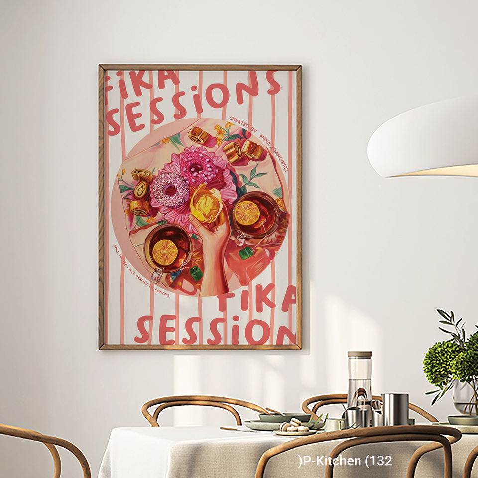 ของตกแต่งผนังสำหรับเทศกาล, โปสเตอร์ภาพประกอบขนมกาแฟฟิก้า, ของตกแต่งผนังร้านกาแฟสไตล์สแกนดิเนเวียน