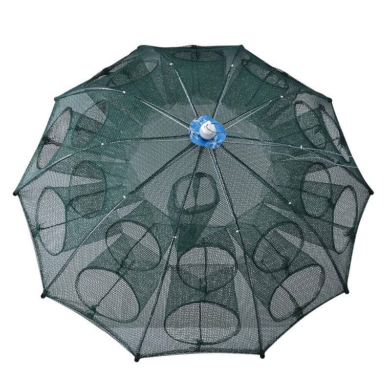 Fhgjry ตาข่ายดักกุ้งแบบกลม ตาข่ายดักปลาแบบร่ม ทนทาน ใช้ดักปลา ปู ปลาไหล สำหรับใช้งานกลางแจ้ง