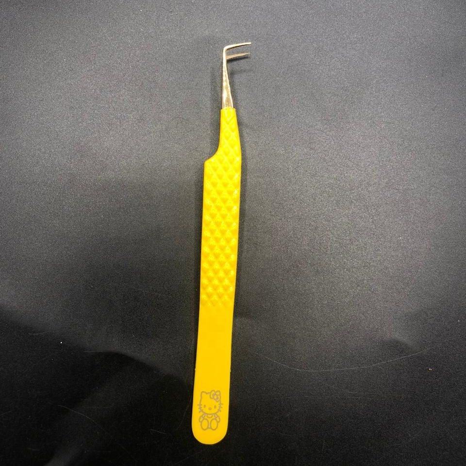 แหนบขนตาสแตนเลสแข็งแบบมืออาชีพด้ามจับเพชรปลายทอง90องศาสีเหลืองทนทาน