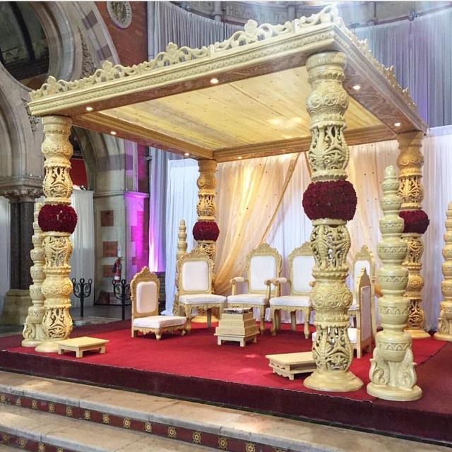 Fiber Designer Mandap Wedding Mandap Decoration in UK Mandap Outdoor Wedding Decoration Golden Colour