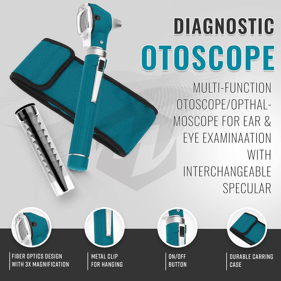 ชุดตรวจหูแบบพกพาไฟเบอร์ออปติกมินิโอโตสโคป หลากสีรุ้ง ขนาดพกพา สำหรับตรวจหู คอ จมูก พร้อมกล่องเก็บป้องกัน