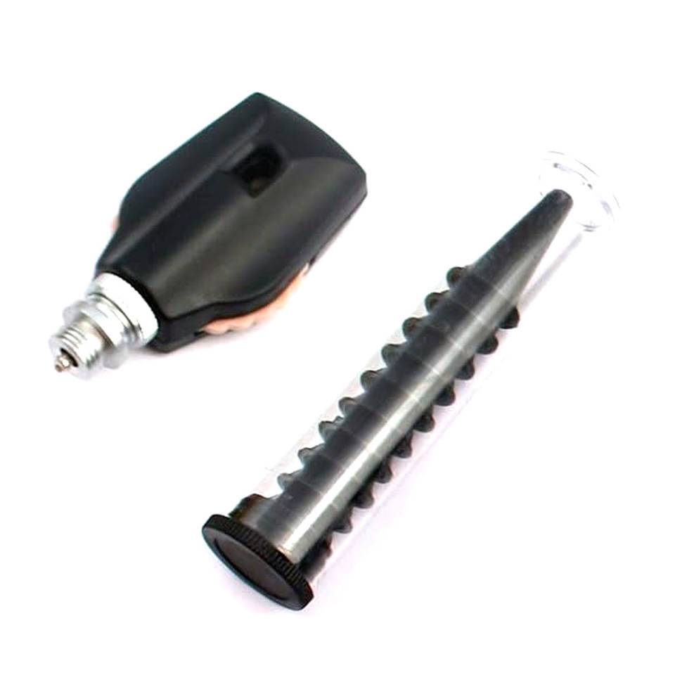 ชุดตรวจหูไฟเบอร์ออปติกพร้อมหลอดไฟ LED สำหรับตรวจหู ชุดตรวจหูและจมูกพร้อมหลอดไฟสำรองสองหลอด สีดำ สำหรับการวินิจฉัยหูระดับมืออาชีพ