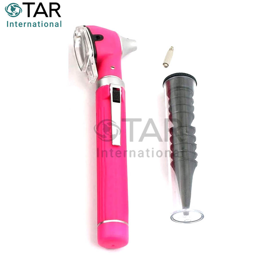 ชุดตรวจหูแบบพกพาพร้อมไฟส่องสว่าง สำหรับตรวจหู คอ จมูก ขนาดพกพา สีชมพู ใช้ในบ้านได้ พร้อมไฟเบอร์ออปติก