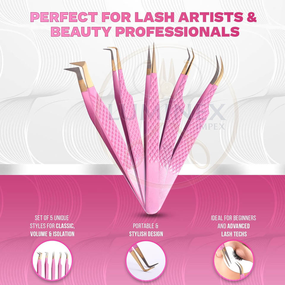 ชุดแหนบปลายขนตาไฟเบอร์พร้อมที่ยึดกันลื่นสำหรับร้านเสริมสวยและที่บ้านชุดปากคีบขนตาแบบพรีเมี่ยมพร้อมปลายไฟเบอร์