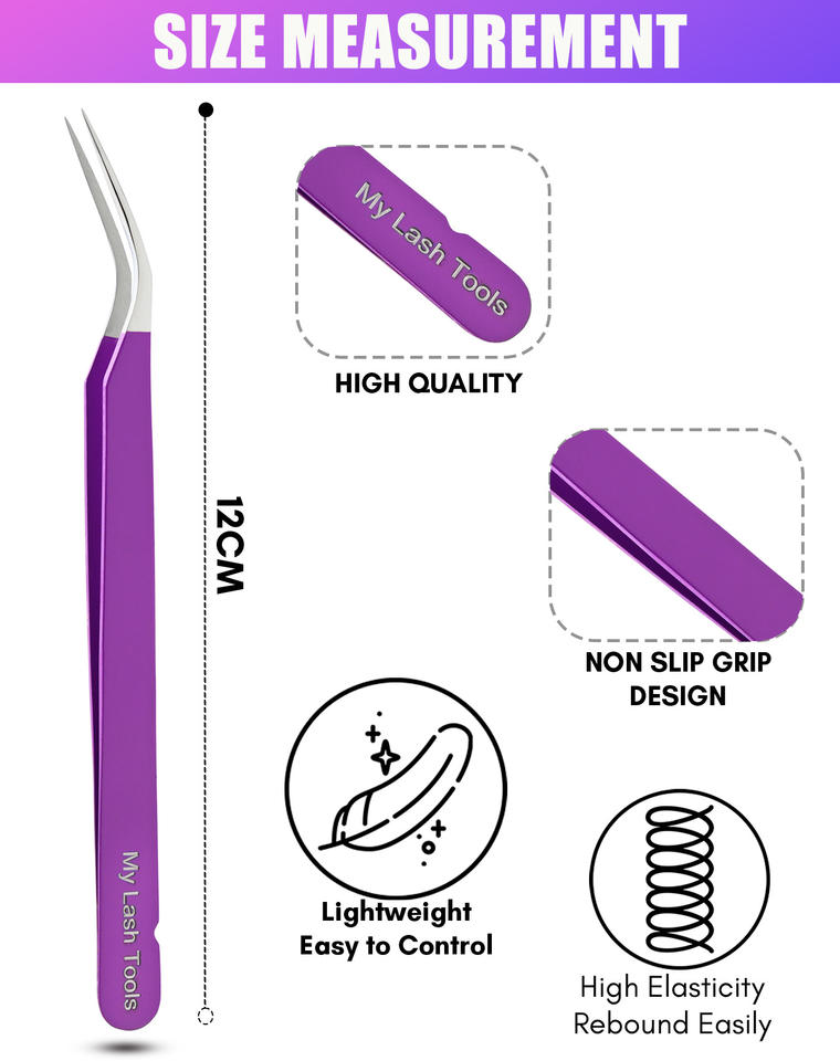 แหนบปลายขนตาแบบไฟเบอร์แหนบแยกขนตาแหนบเส้นใยสำหรับการต่อขนตาด้วยเครื่องมือเพิ่มวอลลุ่ม
