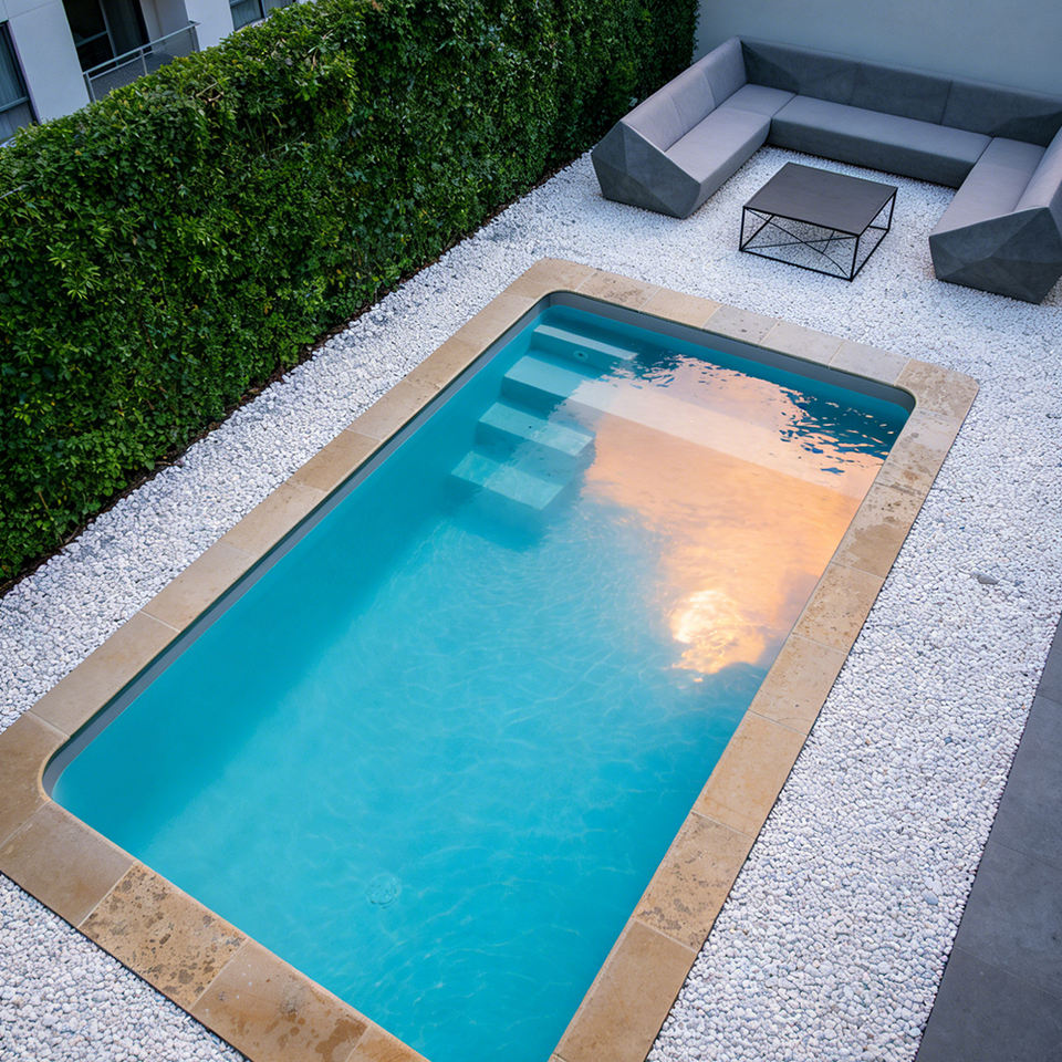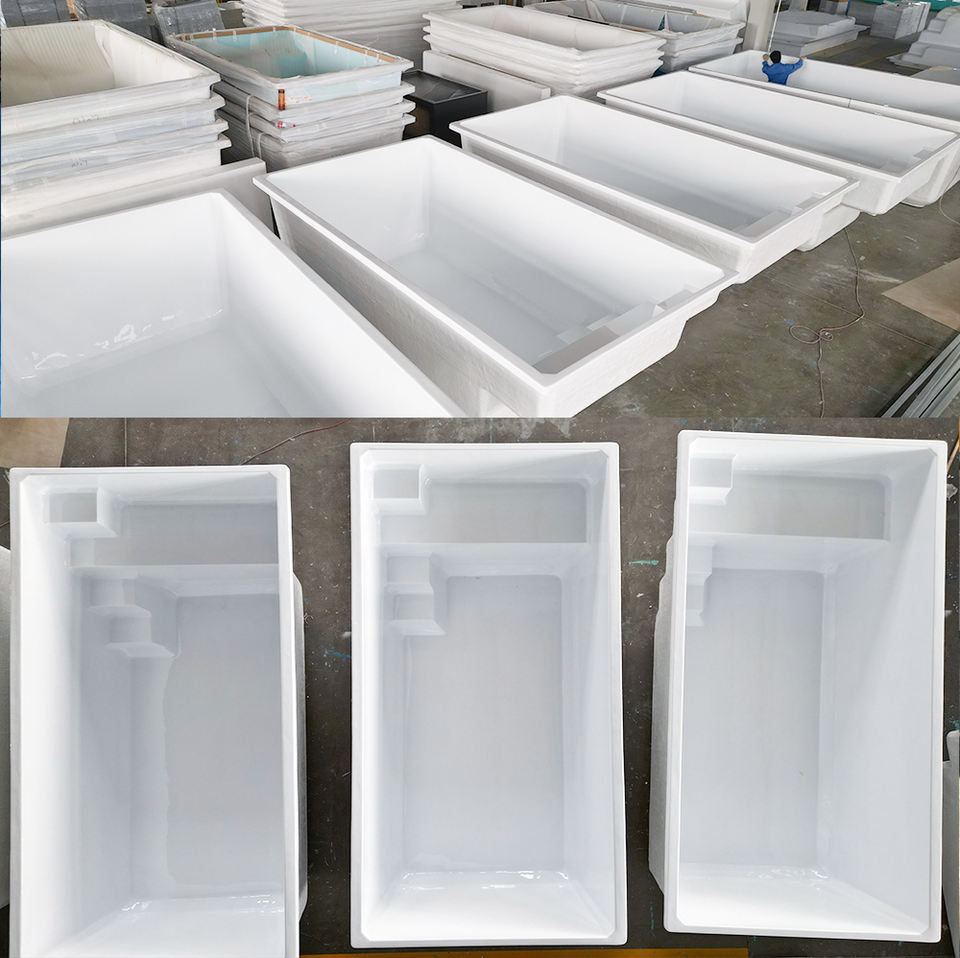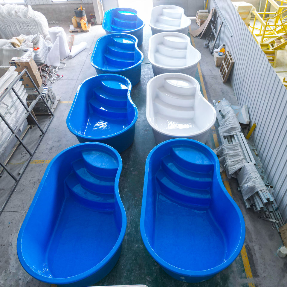 สระว่ายน้ำไฟเบอร์กลาส ABS แบบตั้งพื้น พร้อมบันได น้ำหนักเบา ทนทานต่อรังสียูวี เหมาะสำหรับครอบครัว สนุกกับการเล่นน้ำกลางแจ้งในสวนหลังบ้าน
