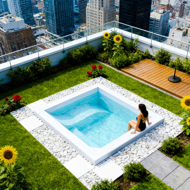 สระว่ายน้ำไฟเบอร์กลาสทรงกลมแบบกำหนดเองได้สำหรับสวนกลางแจ้ง ทนทานต่อการกัดกร่อนและรังสียูวี