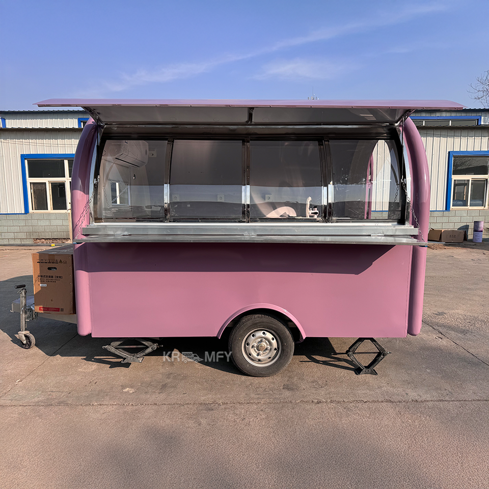 รถพ่วงขายอาหารเคลื่อนที่แบบกำหนดขนาดได้ ทำจากไฟเบอร์กลาส สำหรับขายฮอทดอก ชานมไข่มุก ขนม และเครื่องดื่มในครัวเชิงพาณิชย์