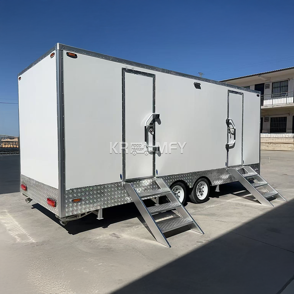 ห้องน้ำไฟเบอร์กลาสพร้อมฝักบัวอาบน้ำ ห้องน้ำเคลื่อนที่แบบพกพา รถพ่วงห้องน้ำเคลื่อนที่สุดหรู