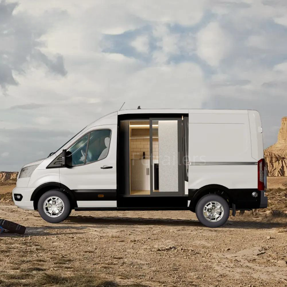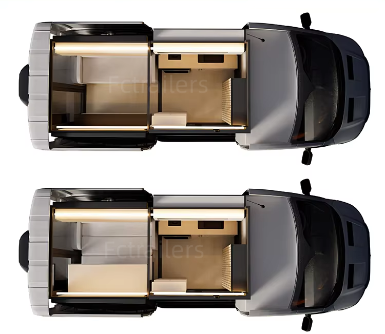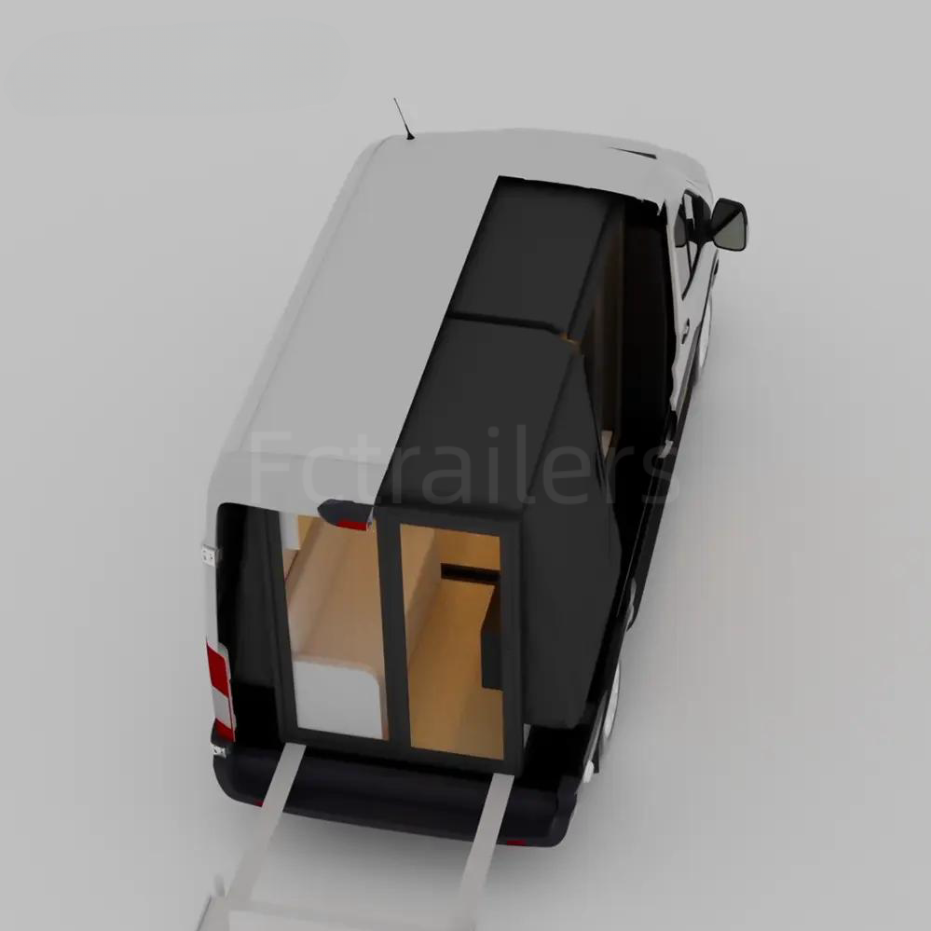 รถพ่วงไฟเบอร์กลาสสำหรับการเดินทางออฟโรดที่มีประสิทธิภาพกล่องเทรลเลอร์แบบป๊อปอัพที่ปรับปรุงพื้นที่ภายใน