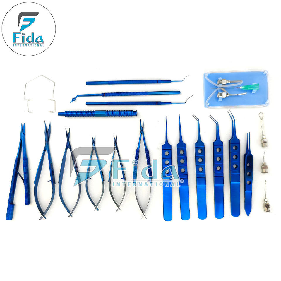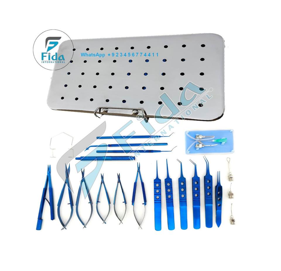 ชุดเครื่องมือผ่าตัดต้อกระจกแบบไมโครซิร์เจอร์ ฟิดา อินเตอร์เนชั่นแนล อาย แคทตารัคท์ บลู ไทเทเนียม 21 ชิ้น สำหรับการผ่าตัดต้อกระจก ใช้ซ้ำได้