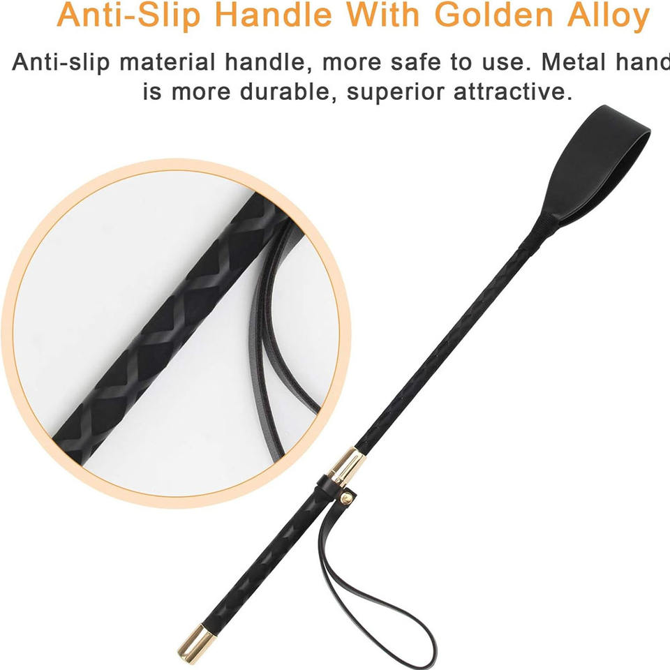 แส้ขี่ม้าแบบหนัง ทนทาน ออกแบบมาเพื่อการควบคุมที่มั่นคง ใช้งานได้สมดุล เหมาะสำหรับการฝึกซ้อมและการเล่นกีฬาขี่ม้า