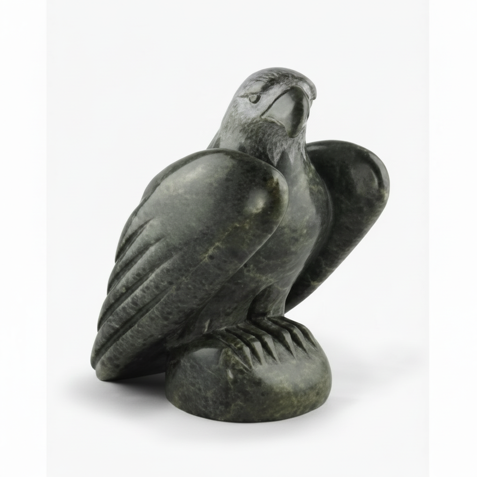 รูปปั้นนกอินทรีหินสบู่สีเขียวเข้มตั้งอยู่บนฐานหินที่มีรายละเอียดมีจำหน่ายในราคาขายส่ง